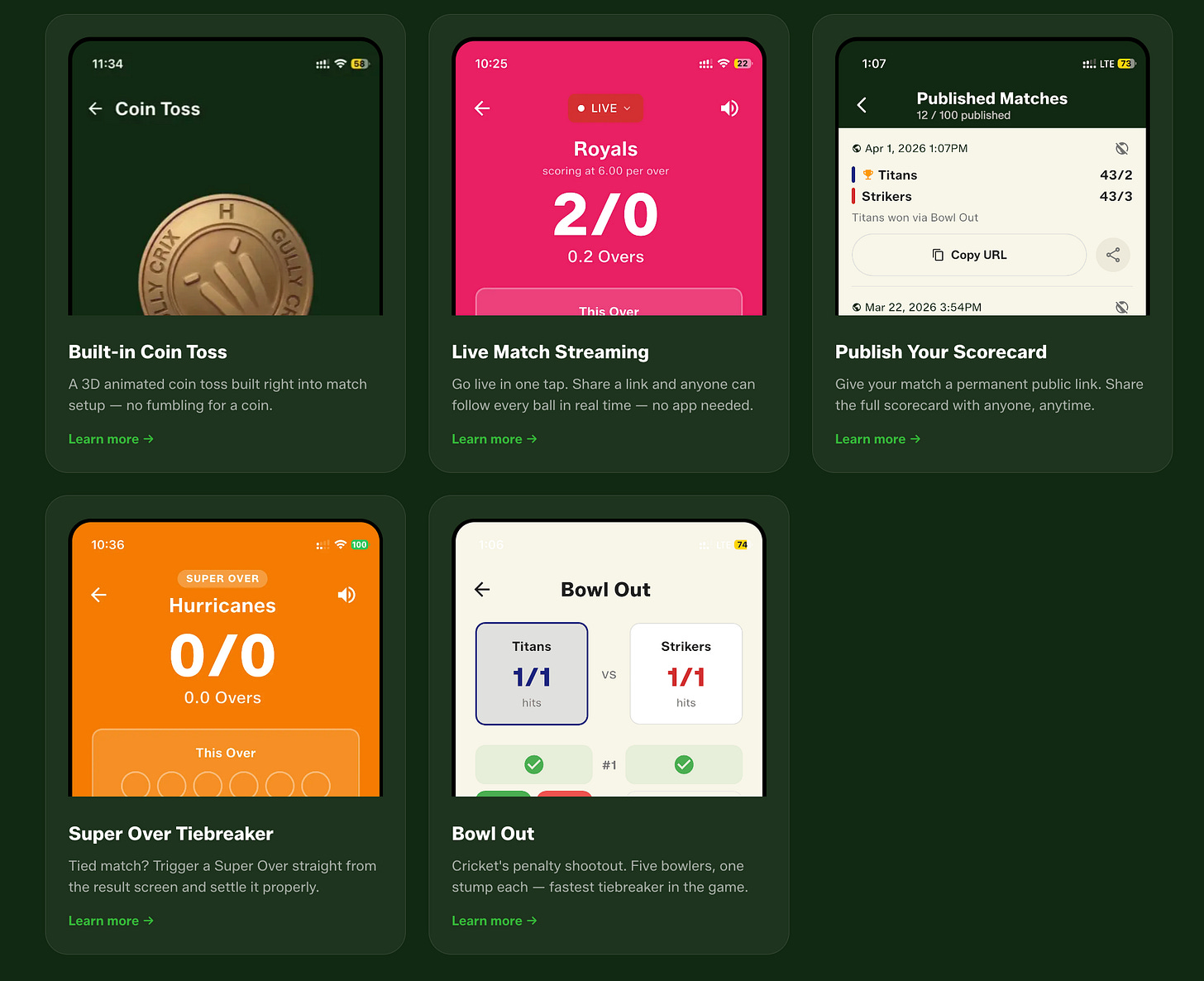 Tie-Breakers & Tosses: Full support for Super Overs and digital coin tosses.